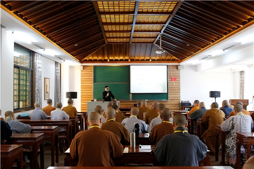 培训活动中,柳天旸顾问为与会辩手详细介绍了辩论活动的分类构成,详尽说明了辩手的形象及定位。通过对多段辩论活动精彩片段的回顾与点评,生动的阐述各辩手的分工协作,并立足佛教经典辩论的特殊性与专业性与广大佛学院领队和辩手进行了充分交流。